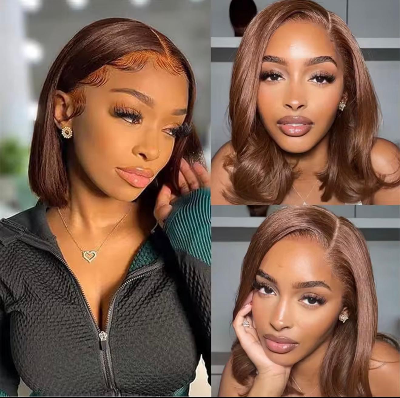 100% premium human hair wig with soft, natural texture. Pre-plucked hairline and lace front for a realistic look. Can be styled, colored, and heat-treated as desired.