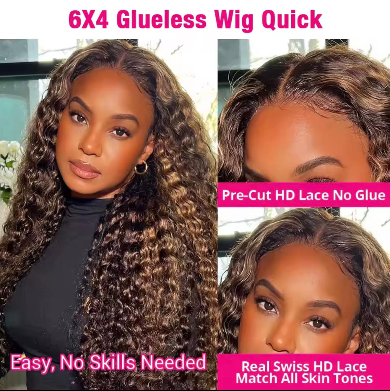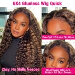 Deep Wave 6×4 Glueless Ready To Wear Lace Frontal Curly Highlight Ombre Preplucked Hairline Pre Cut human hair wig