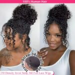 250% density Invisible Strap HD 360 Lace Front Human Hair Deep Curly wig Precut 360 Full Lace Wig with Drawstring Snug Fit
