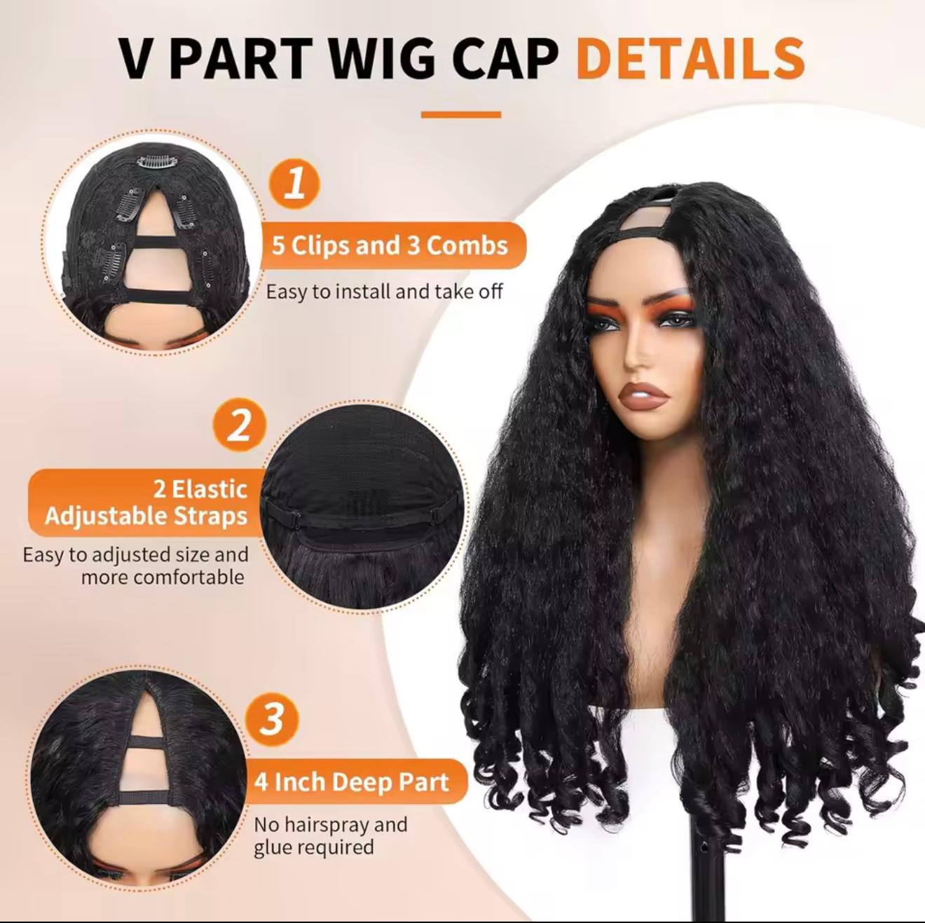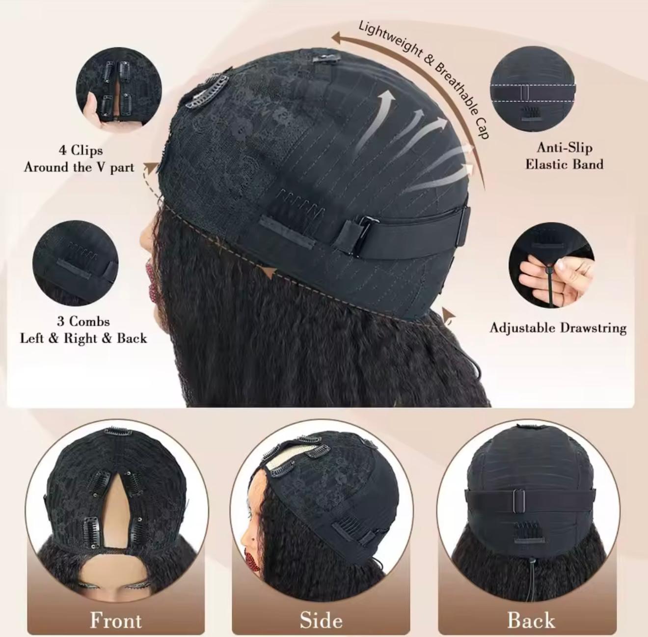 Kinky Straight Curly V Part Human Hair Glueless Wig with Drawstring Upgrade V Part. 250% Density