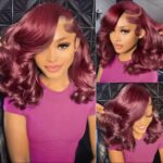 13x4Burgundy 100% Short Bob human hair Lace Front Pre Plucked wig with Baby Hair