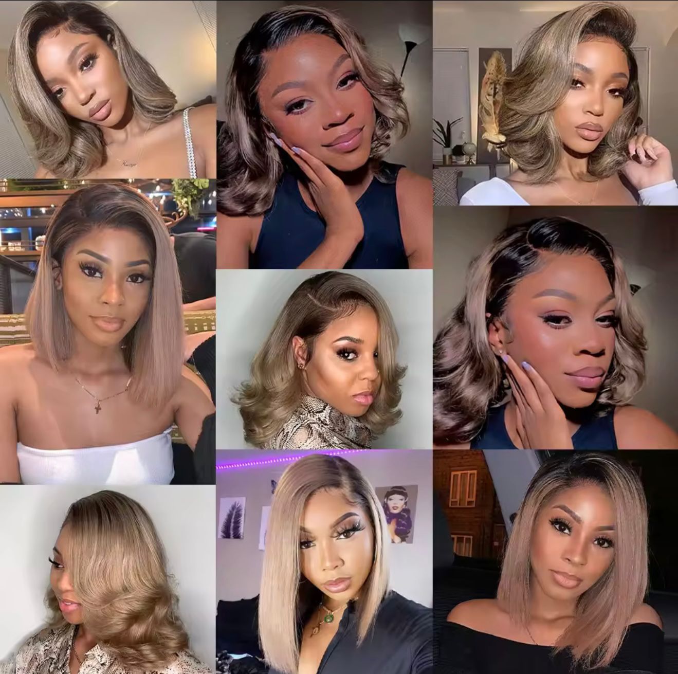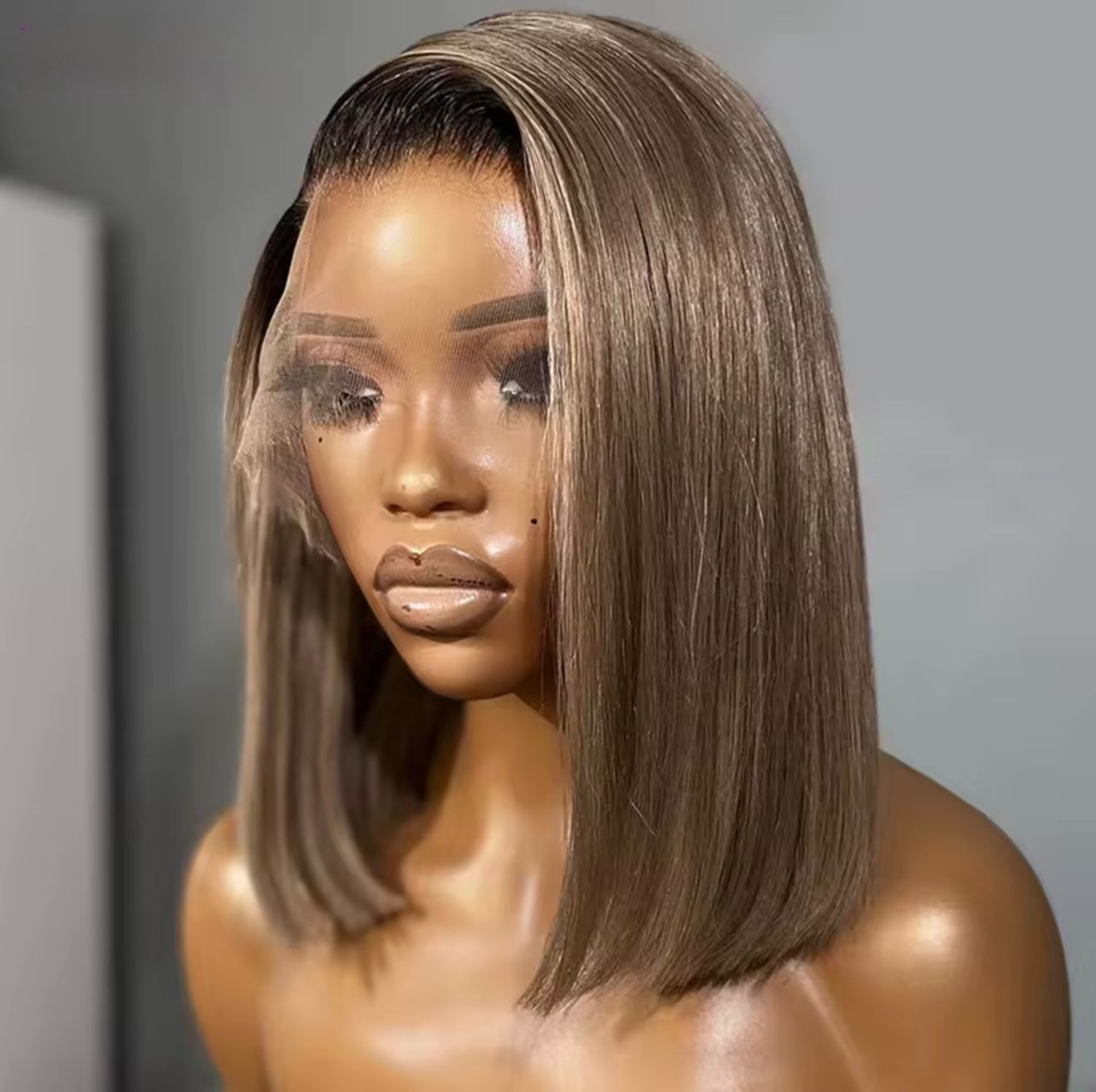 13×4 Ombre Ash Blonde With Brown Roots Colored Short Bob human hair Wig
