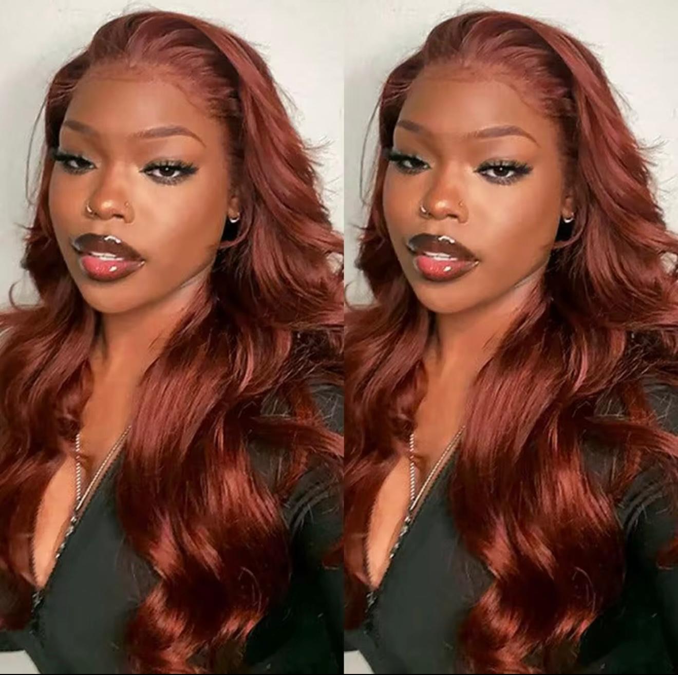 Home » Store » Reddish Brown Body Wave Lace Frontal Human Hair Wigs 100% Red Colored 13×4 Pre PluckedLace Frontal